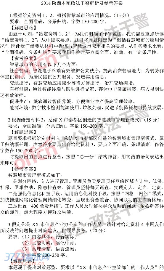 [组图]2014年陕西政法干警申论(本硕)考试真题解析及参考答案