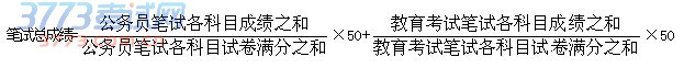 考生的笔试总成绩由公共科目笔试成绩与教育入学考试成绩合成,其计算公式为: