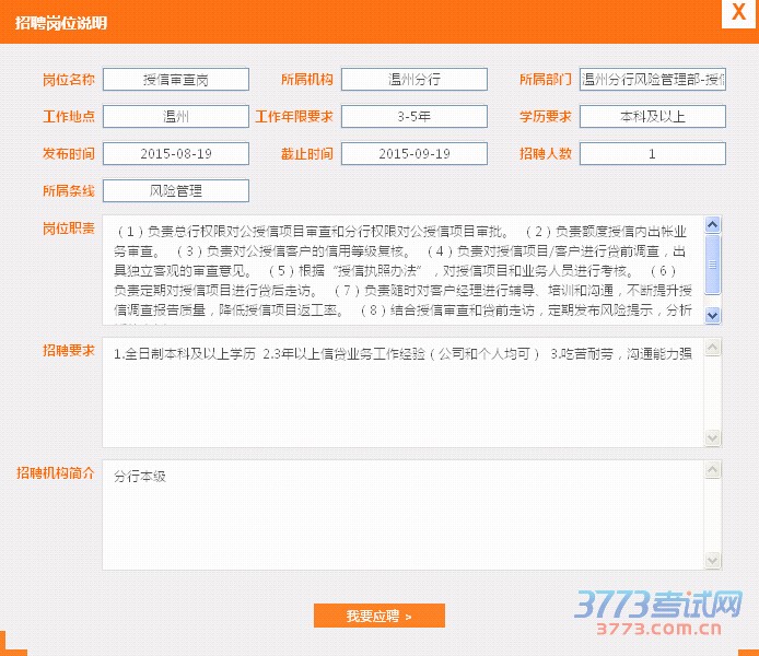 [图文]宁波银行温州分行2015年招聘授信审查岗启事
