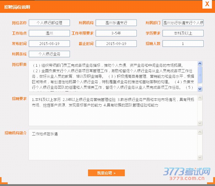 [图文]宁波银行温州分行乐清支行2015年招聘个人银行部经理启事