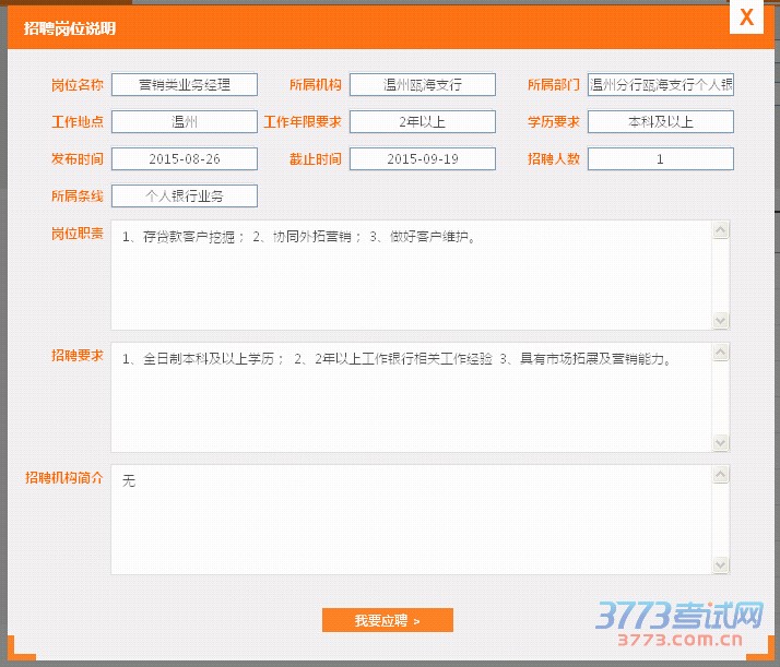 [图文]宁波银行温州分行瓯海支行2015年招聘营销类业务经理启事