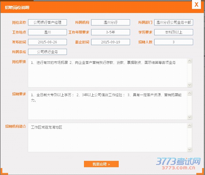 [图文]宁波银行温州分行2015年招聘公司银行客户经理启事