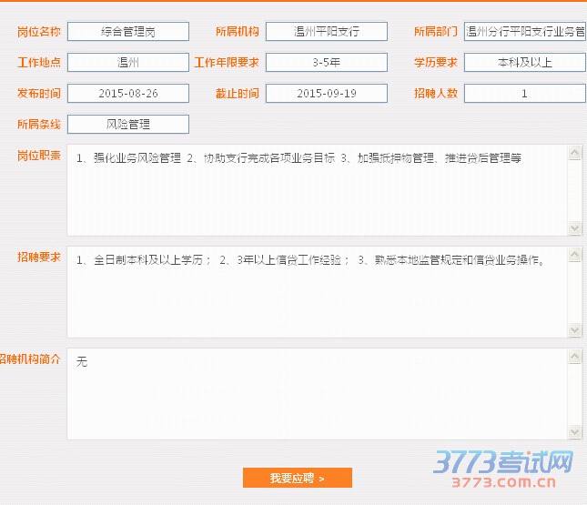 [图文]宁波银行温州分行平阳支行2015年招聘综合管理岗启事