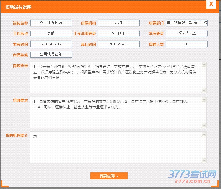 [图文]宁波银行总行2015年招聘资产证券化岗启事