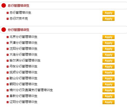 请选择您要应聘的分支机构及岗位,点击 按钮,完成注册及简历投递。