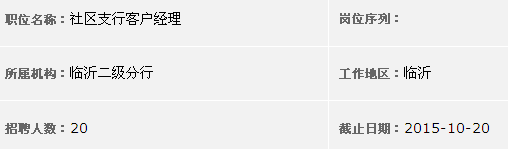 [图文]中国民生银行临沂二级分行2015年招聘社区支行客户经理启事