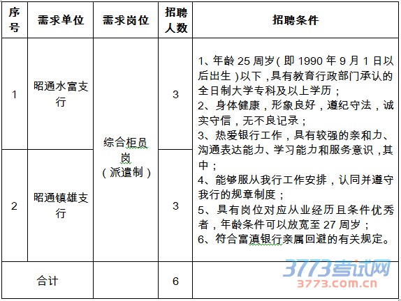 [图文]2015年富滇银行昭通分行招聘启事