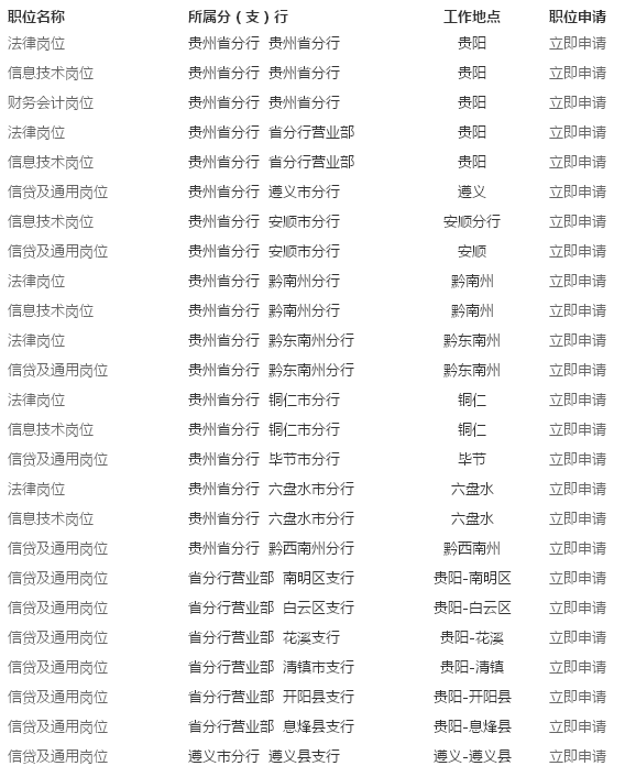 [图文]2016年中国农业发展银行贵州省分行校园招聘岗位表