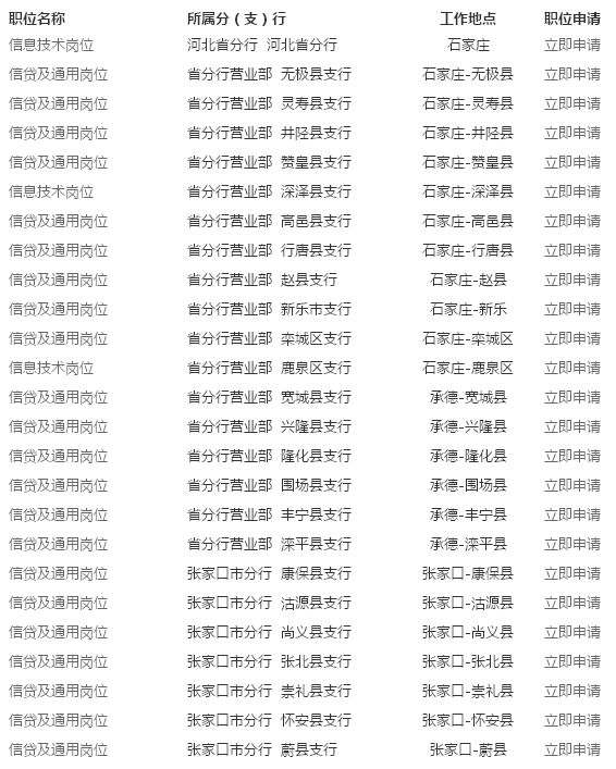 [图文]2016年中国农业发展银行河北省分行校园招聘岗位表