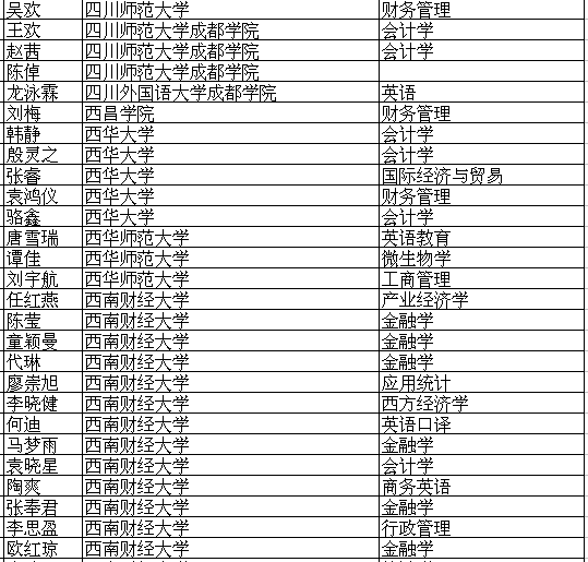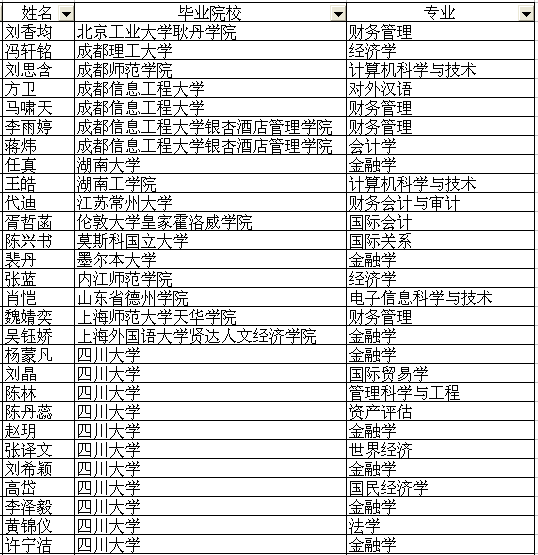 附件:遂宁市商业银行2016届校园招聘成都地区笔试复试名单