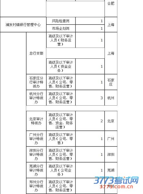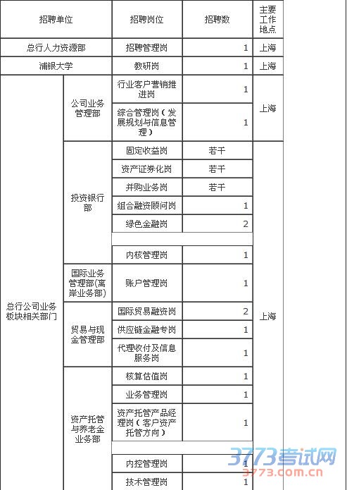 欢迎登录我行主页www.spdb.com.cn人才招聘栏查看各招聘部门详细招聘信息。