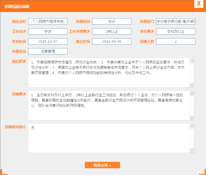 [图文]宁波银行总行电子银行部2016年招聘个人网银产品开发岗启事