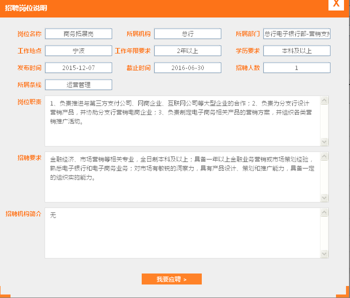 [图文]宁波银行总行电子银行部2016年招聘商务拓展岗启事