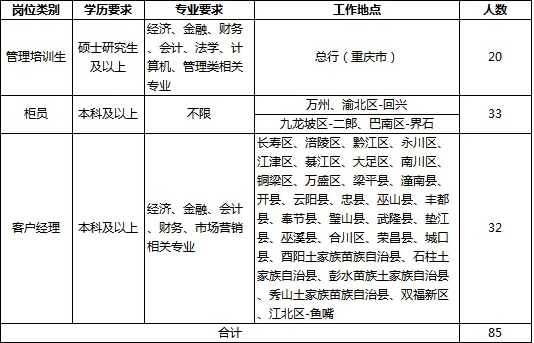 重庆三峡银行股份有限公司是经中国银监会批准,于2008年2月在原万州商业银行基础上重组而成的股份制城市商业银行,注册资本23.54亿元。成立以来,各项业务迅速发展,经营稳健。截至2015年6月末,全行资产总额1160亿元,各项存款余额783亿元,各项贷款余额306亿元,上半年完成利润11亿元。各项监管指标全面达到审慎监管要求,在全市营业网点达到73个。我们诚邀有志有识之士,共创辉煌的明天!