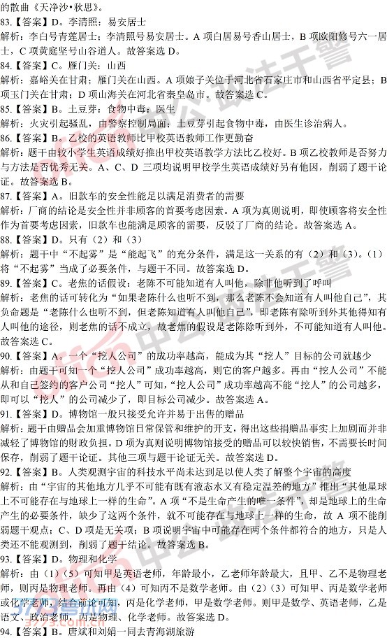 [组图]2014年河北政法干警考试行测(本硕)答案解析