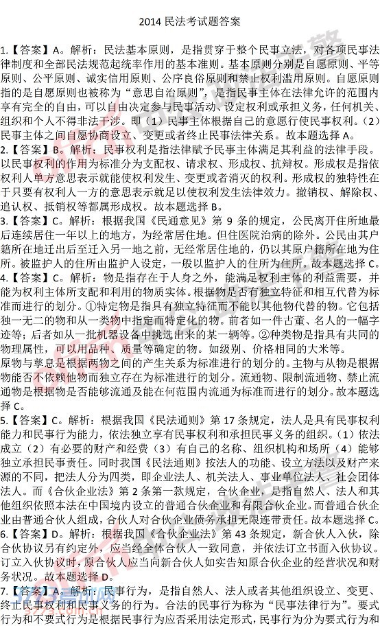 [组图]全国政法干警2014年考试民法学真题答案解析