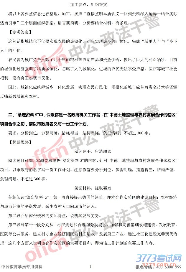 [组图]2015年安徽政法干警申论真题答案解析(专科)
