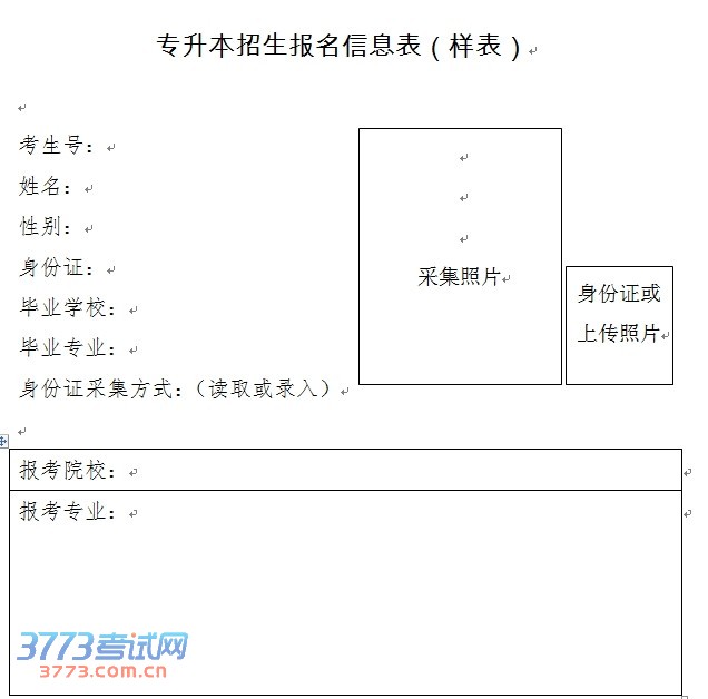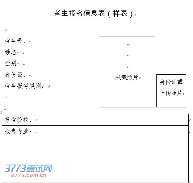 4.身份证采集方式为“录入”的考生,需在此表骑照片加盖毕业院校公章,并凭此表及其他身份证明(临时身份证等)到招生院校报考。