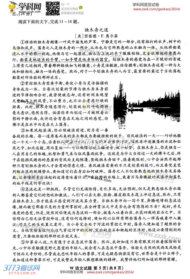 [组图]2014安徽高考语文试题发布