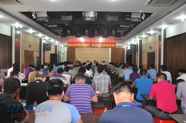 7月9日上午,我省召开了2014年普通高校招生录取工作动员大会。省招委主任、省委教育工委书记、省教育厅厅长、2014年省普通高校招生录取工作领导组组长程艺到会并作重要讲话,省招委副主任、省教育厅副厅长、2014年省普通高校招生录取工作领导组副组长李和平主持会议,省教育厅副厅级纪检监察专员、省教育纪工委副书记肖纯从纪检监察角度对全体录取工作人员作了要求,省教育招生考试院院长、2014年省普通高校招生录取工作领导组副组长郑大明作全面动员,省教育招生考试院副院长邸建伟、沈滔、邬平川、吴福银,院长助理兼普招处处长袁江林,各市教育招生机构主要负责同志以及2014年普通高校招生录取全体工作人员近100人参加了会议。