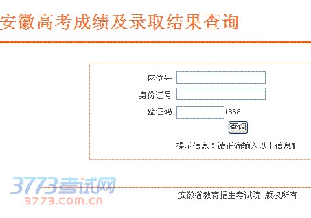 2014年安徽高考成绩及录取结果查询座位号:身份证号:验证码:1868