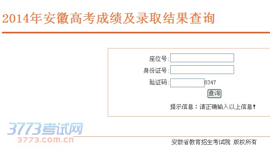 2014年安徽高考成绩及录取结果查询座位号:身份证号:验证码:8347