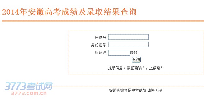 2014年安徽高考成绩及录取结果查询座位号:身份证号:验证码:
