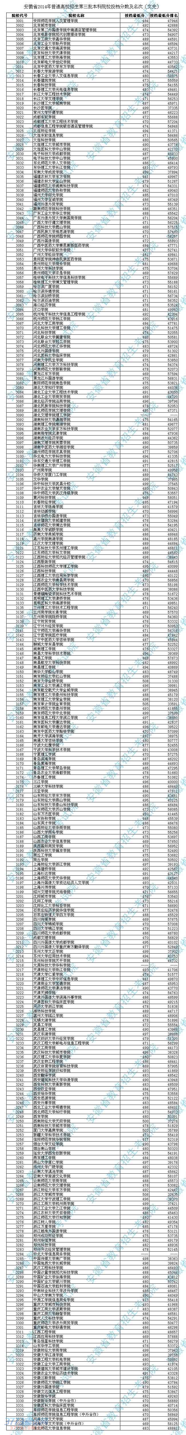[图文]2014安徽高考三本院校投档分数及名次(文史)