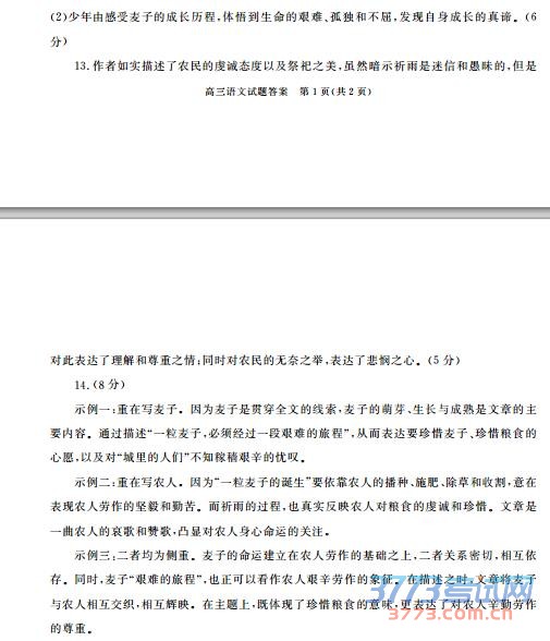 13.作者如实描述了农民的虔诚态度以及祭祀之美,虽然暗示祈雨是迷信和愚昧的,但是高三语文试题答案 第2页(共2页)