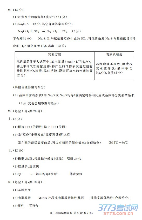 命题方法一样,都是多给了一个设定条件。高三理综试题答案 第3页(共7页)