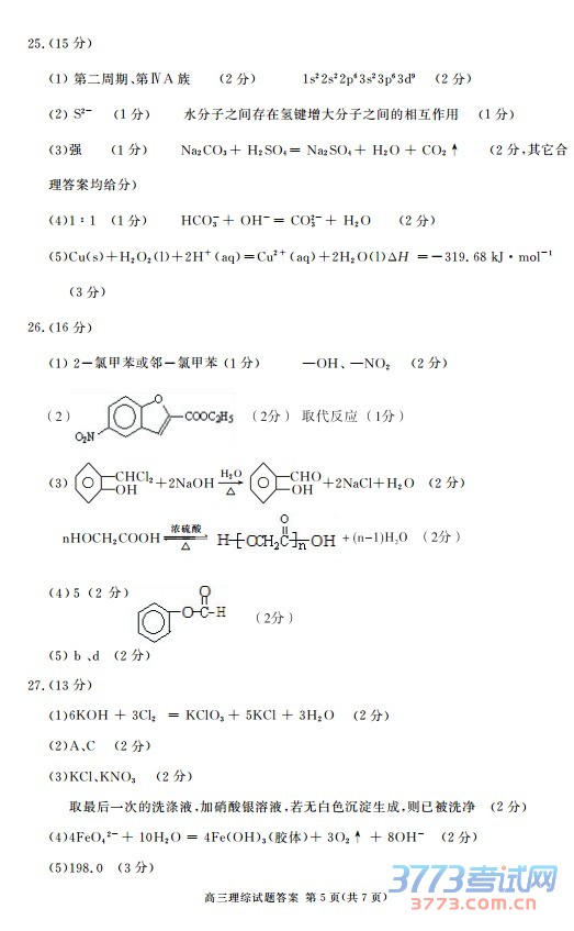 (5)198.0 (3分)高三理综试题答案 第6页(共7页)