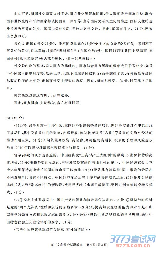 (若考生回答其他观点符合题意,亦可酌情给分)高三文科综合试题答案 第4页(共4页)