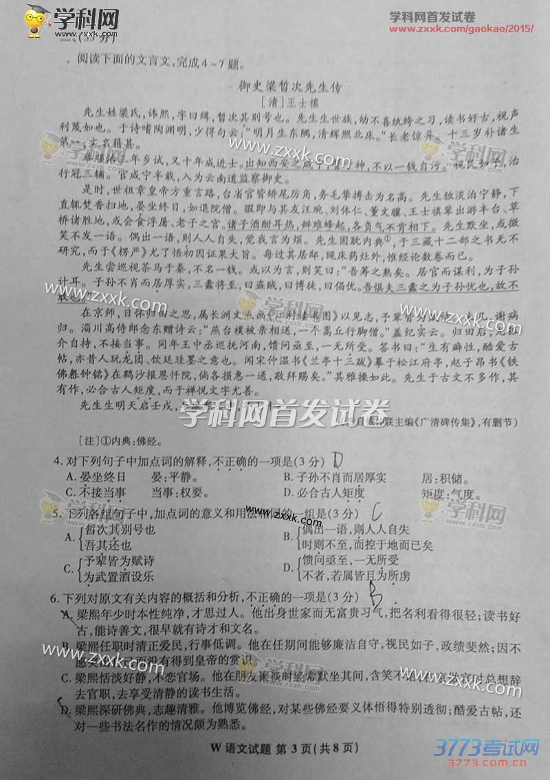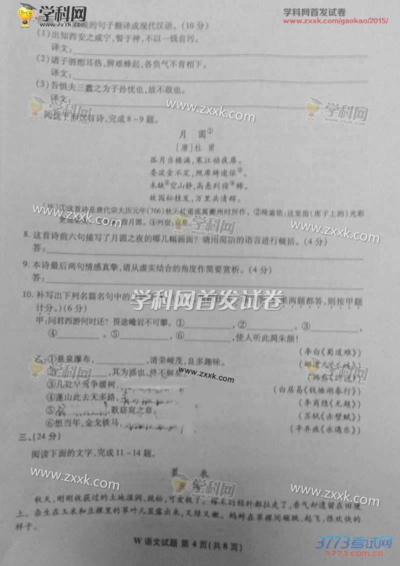 [组图]2015安徽高考语文试题及答案(部分答案)