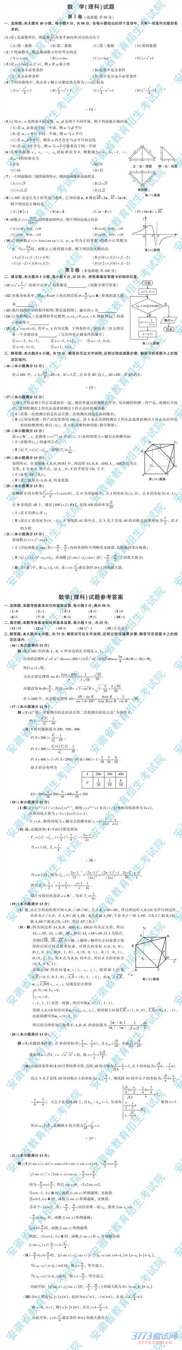 2015年安徽高考数学(理科)试题及参考答案