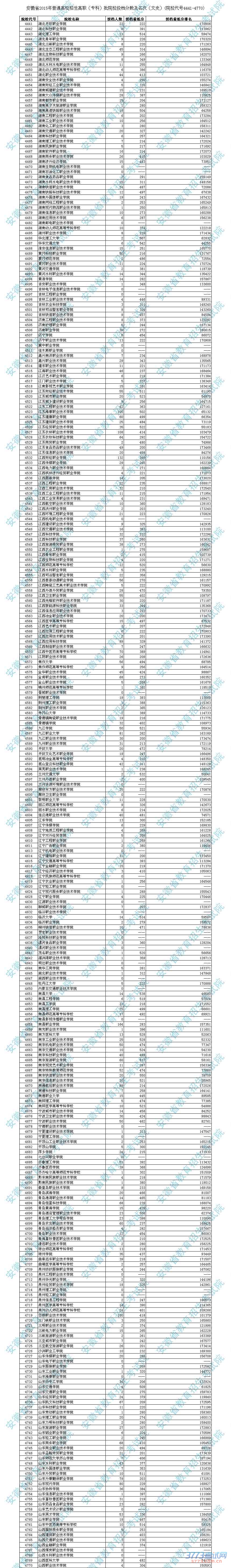[图文]2015安徽专科投档分数线及名次(文科院校代号4441-4770)
