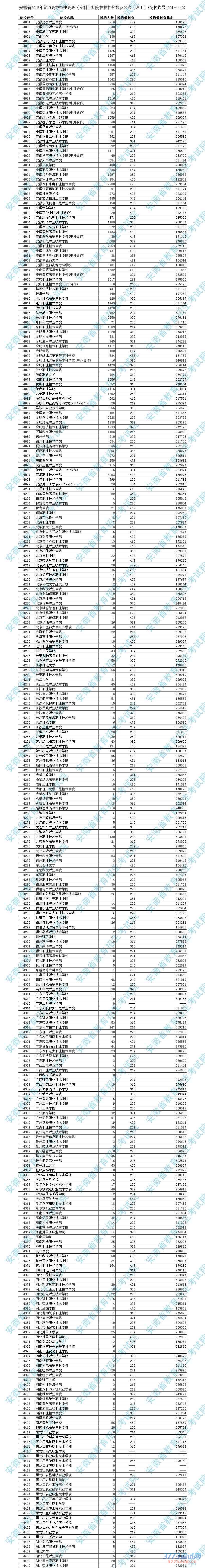 [图文]2015安徽高招专科理科投档线及名次(院校代号4001-44404)