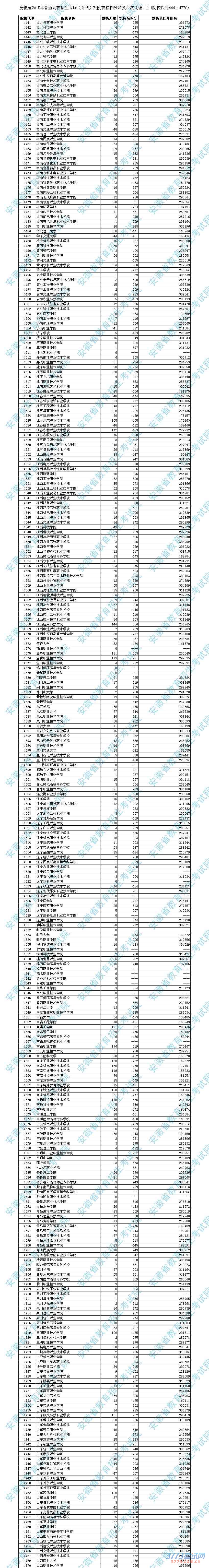 [图文]2015安徽专科理科投档分数线及名次(院校代号4441-4770)
