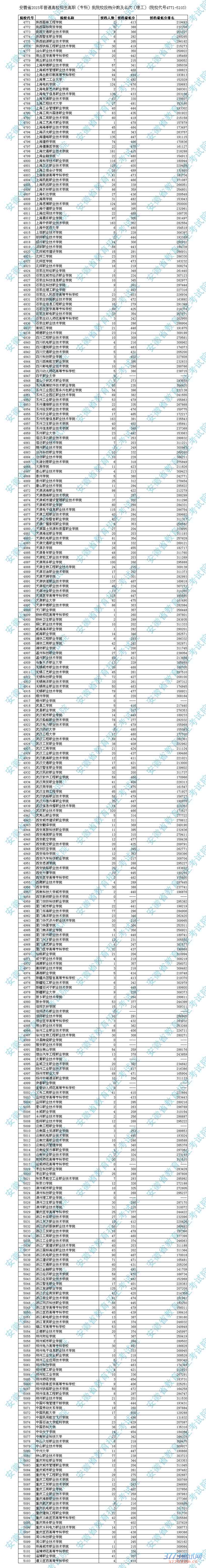 安徽省2015年普招高职(专科)投档分数及名次(理工)(院校代号4771-5103)