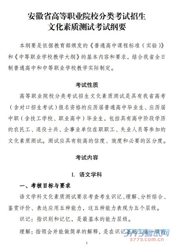 安徽省高等职业院校分类招生考试文化素质测试考试纲要.pdf