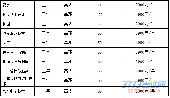 学院以三年制高等职业教育为主,现有医药卫生类、财经商贸类、装备制造类、电子信息类、食品药品与粮食类、土木建筑类等30个招生专业,打造了护理、汽车检测与维修技术、会计、医学检验技术、药学、模具设计与制造、工程造价、电子商务、建筑工程技术等一批在省内具有重要影响力和鲜明特色的品牌专业。截止2015年9月,学院有全日制高职在校生10735人,电大(奥鹏)学历教育在校生1765人。