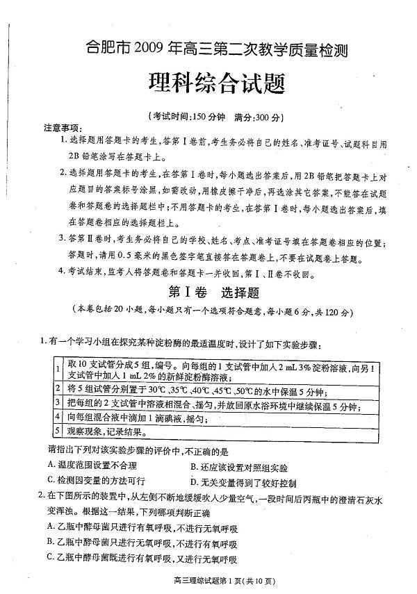[组图]2009年合肥市高考二模理综试题