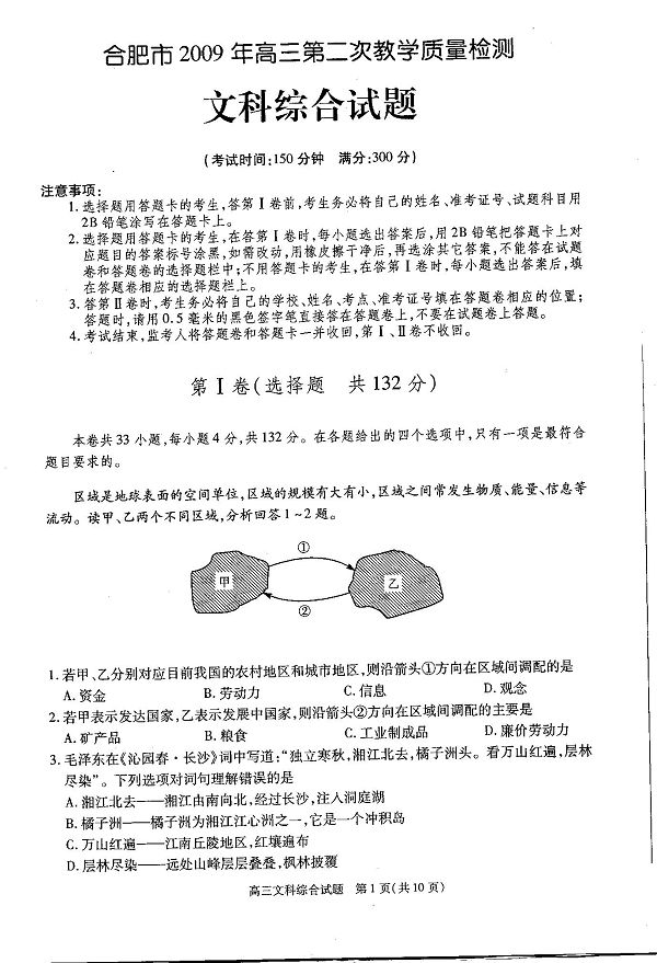| [安徽高考][组图]2009年合肥市二模考试文综试卷答案 | 03-29 |
