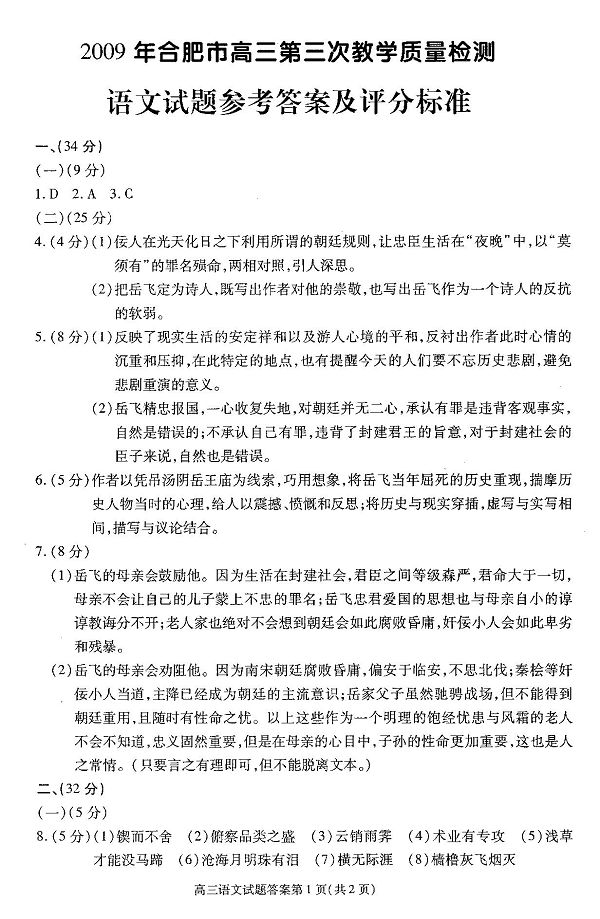 [组图]2009年合肥市高三三模语文试题答案评分标准