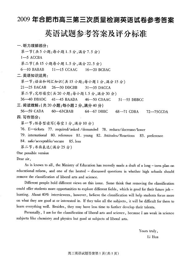 | [安徽高考][组图]2009年合肥市高三三模语文试题答案评分标准 | 04-26 |