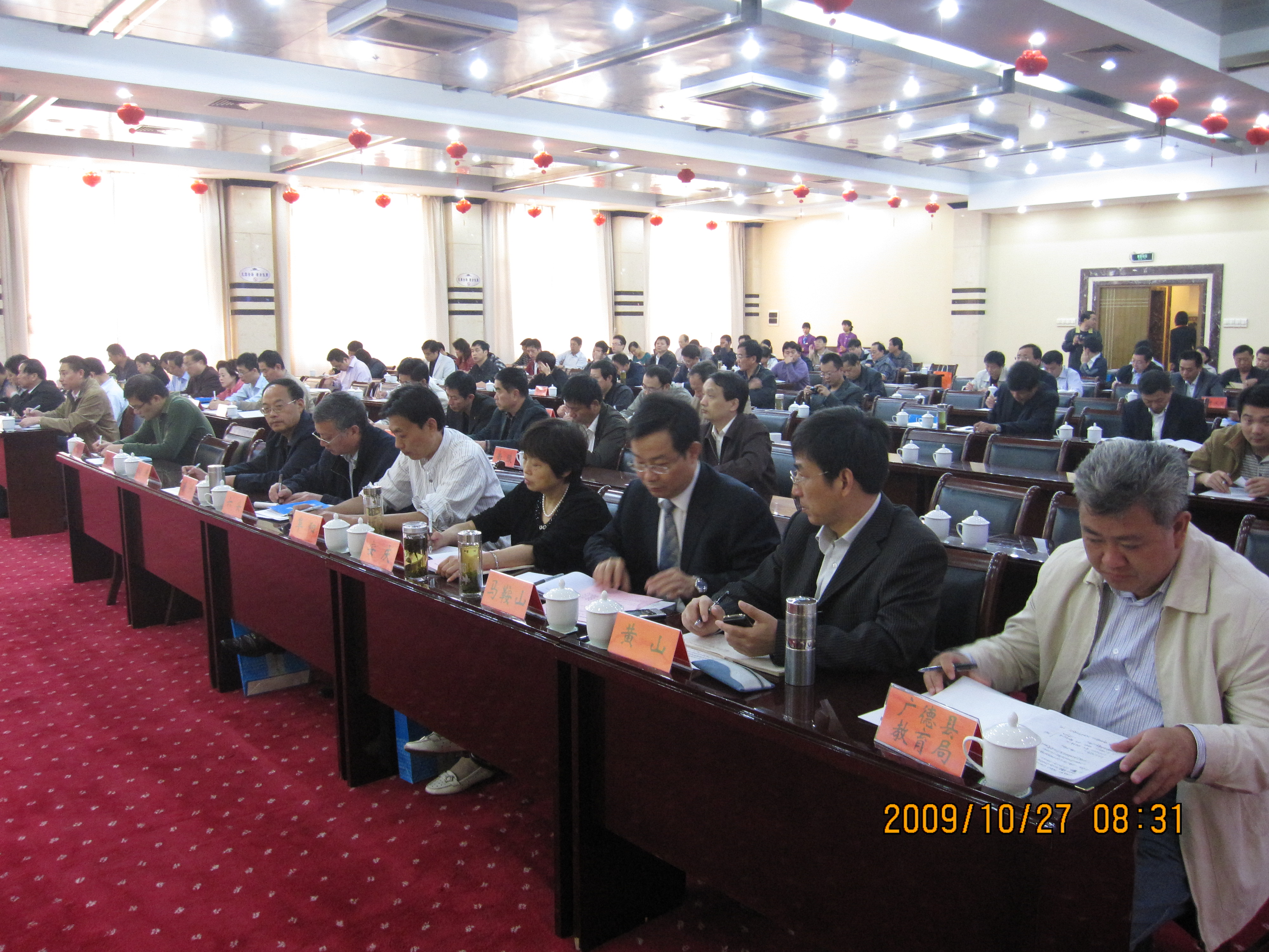 10月27日,2009年全省普通高校招生考试工作总结会在宣城市广德县召开。省招委副主任、省教育招生考试院院长郑大明,副院长卫道元、沈滔,各市教育局分管局长、招生考试机构负责同志和考务工作人员,有关县(市、区)教育局和招生考试机构负责同志,部分省属高校招生负责人,省教育招生考试院有关处室同志共130余人参加会议。