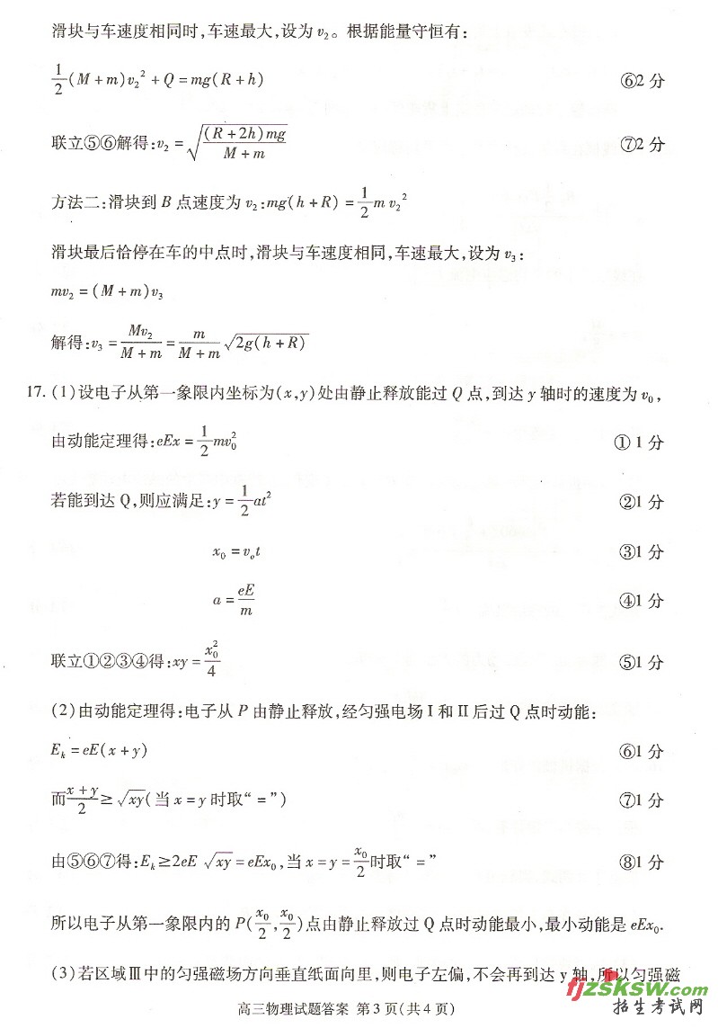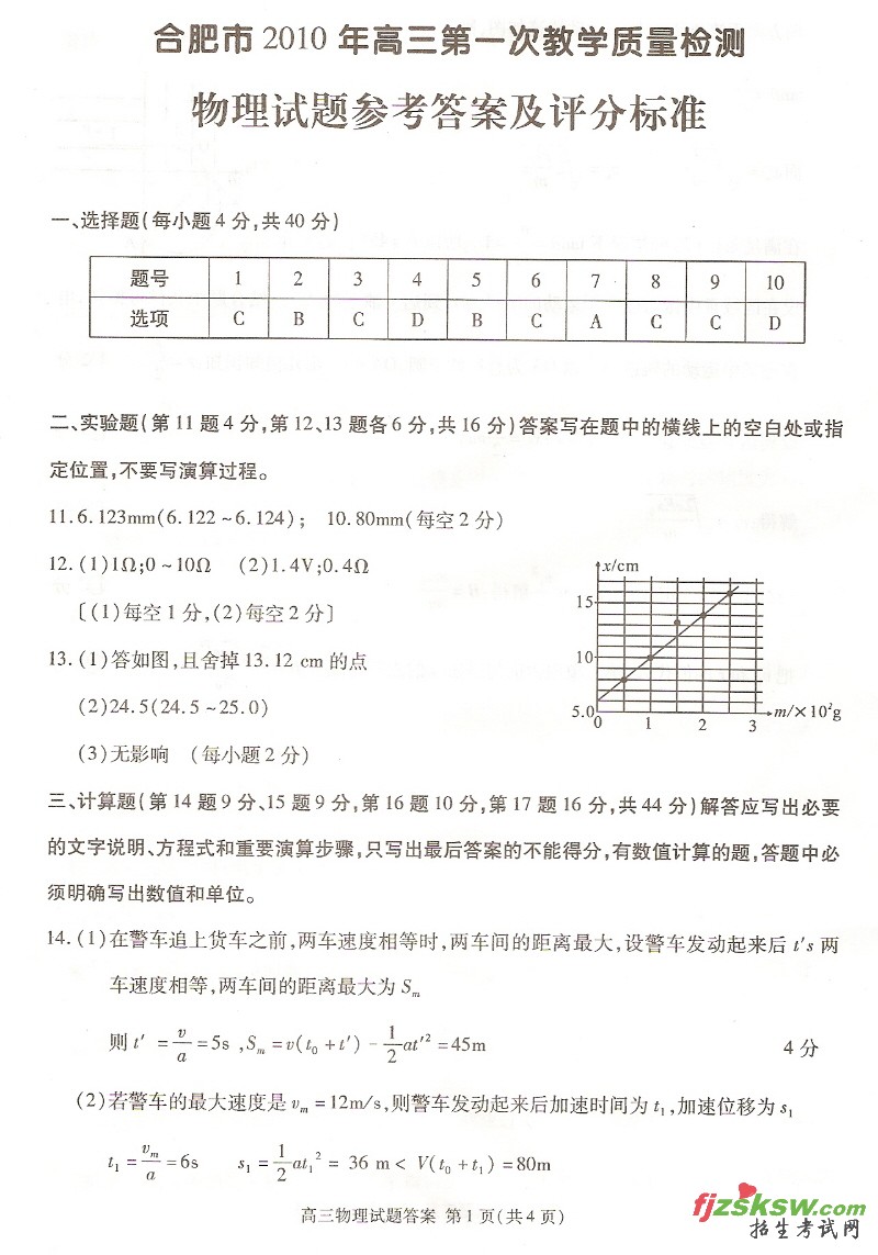 [组图]2010年合肥一模物理试卷答案及评分标准