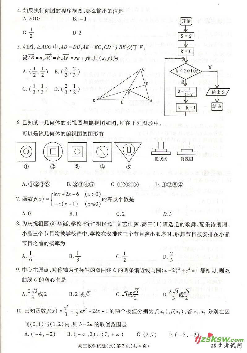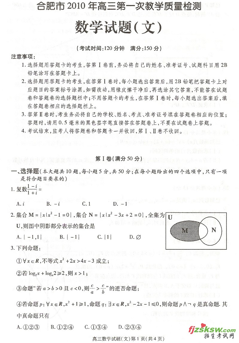 [组图]2010年安徽高考合肥一模数学文科试题
