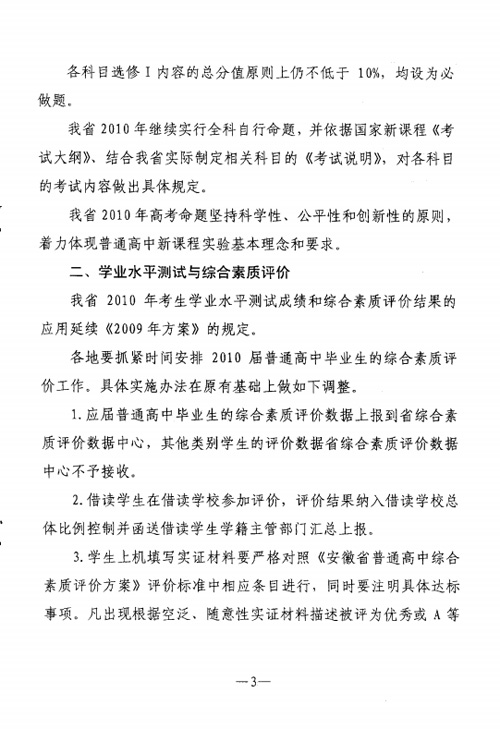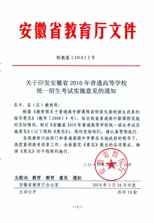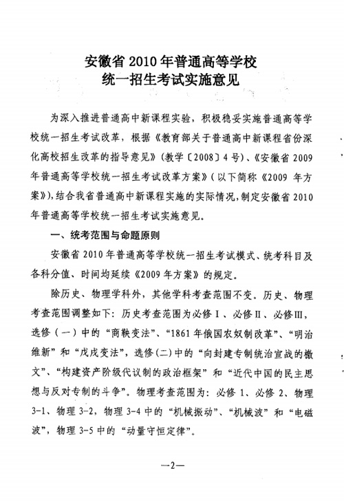 [组图]安徽省2010年普通高等学校统一招生考试实施意见