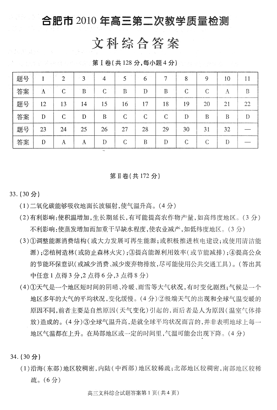 [组图]2010年合肥市二模文综试题答案