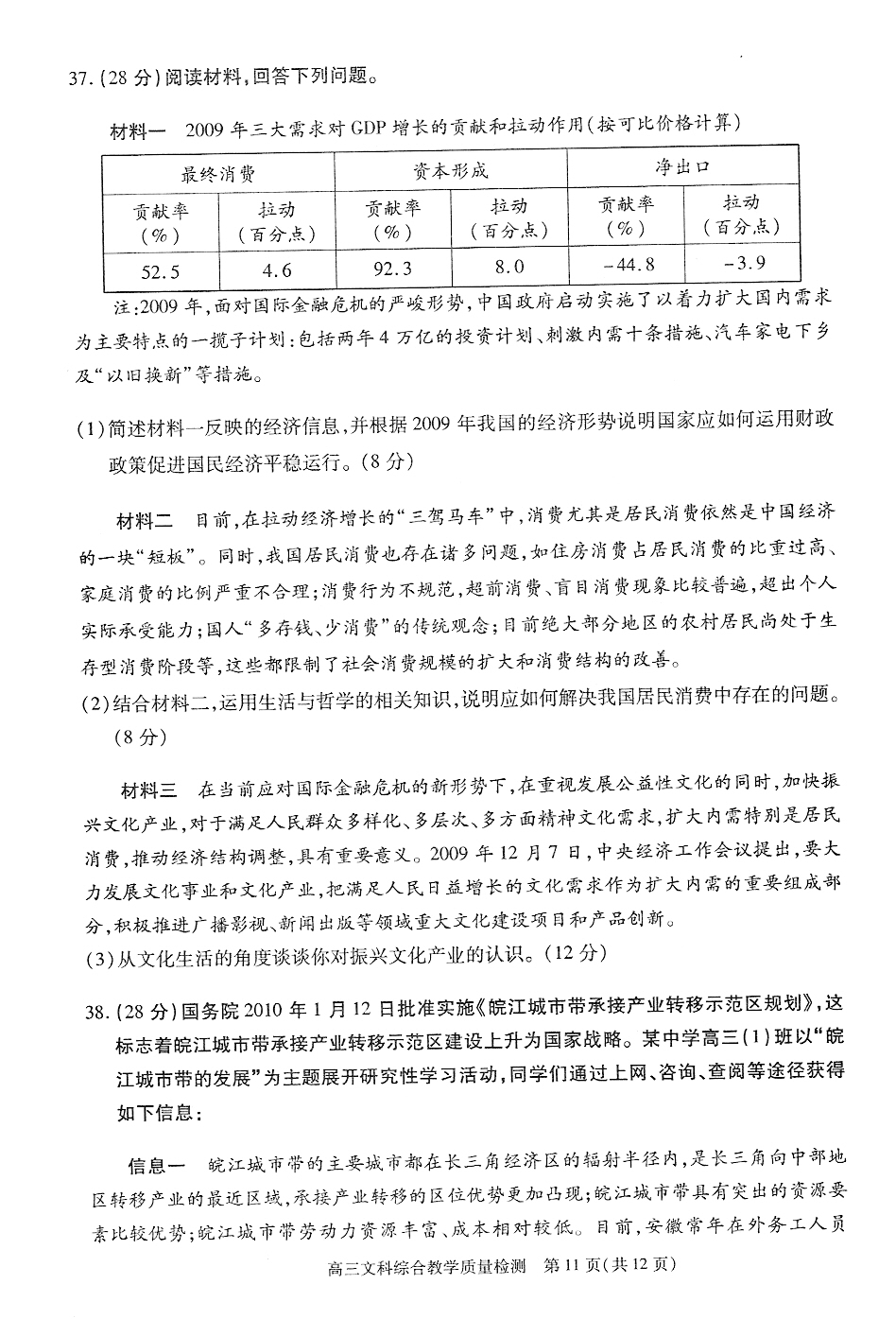 安徽高考][组图]2010年合肥市二模文综试题答案